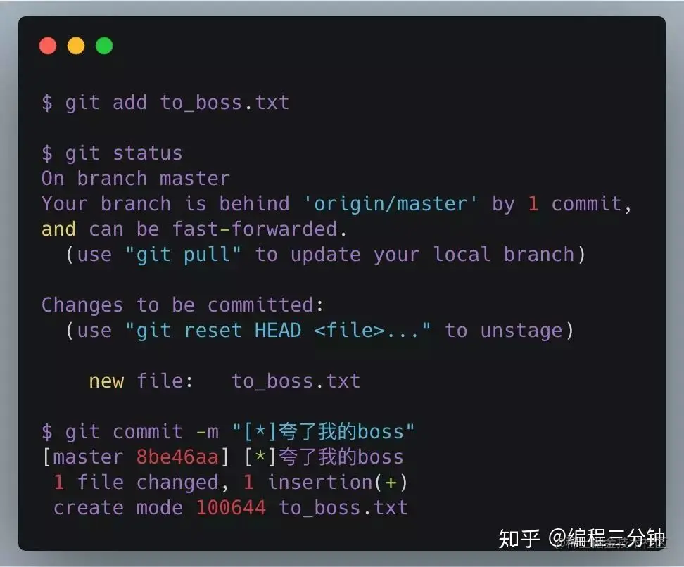 my boss is a bad guy! git add然后status查看新文件已经加入跟踪git commit提交了这次的修改