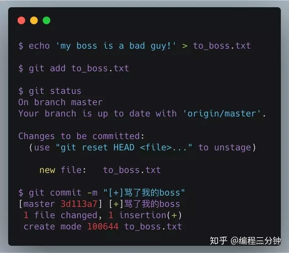我们来创建一个文件,并附带提交信息[+]骂了我的boss,达到下图的效果