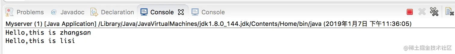 把客户端程序语句 os.write("Hello,this is zhangsan".getBytes()); 改成 os.write("Hello,this is lisi".getBytes());