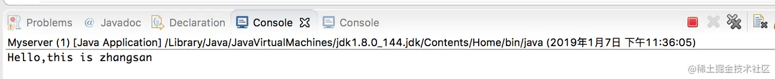 再次运行客户端程序,同样可以连接到服务器端程序并发送消息,服务器端收到消息,如下图:
