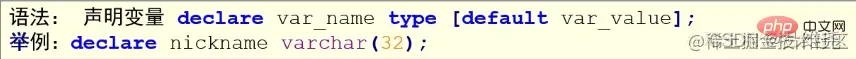 declare var_name01 varchar(20) default 'aaa'; -- 声明/定义变量