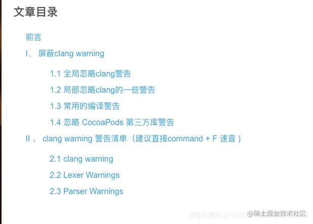 a、全局/局部屏蔽的方法 b、忽略 CocoaPods 第三方库警告 c、clang/Lexer/Parser 警告清单