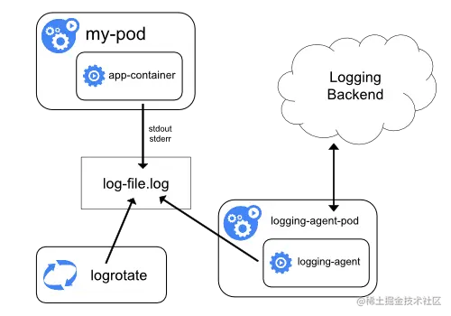 这种收集方案主要针对非标准输出的日志,可以在Pod中以sidecar的方式运行日志收集客户端,将日志收集到日志中心,架构如下: