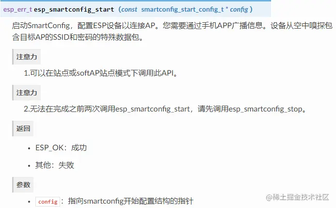 以下 SmartConfig 接口位于 esp_wifi/include/esp_smartconfig.h。
