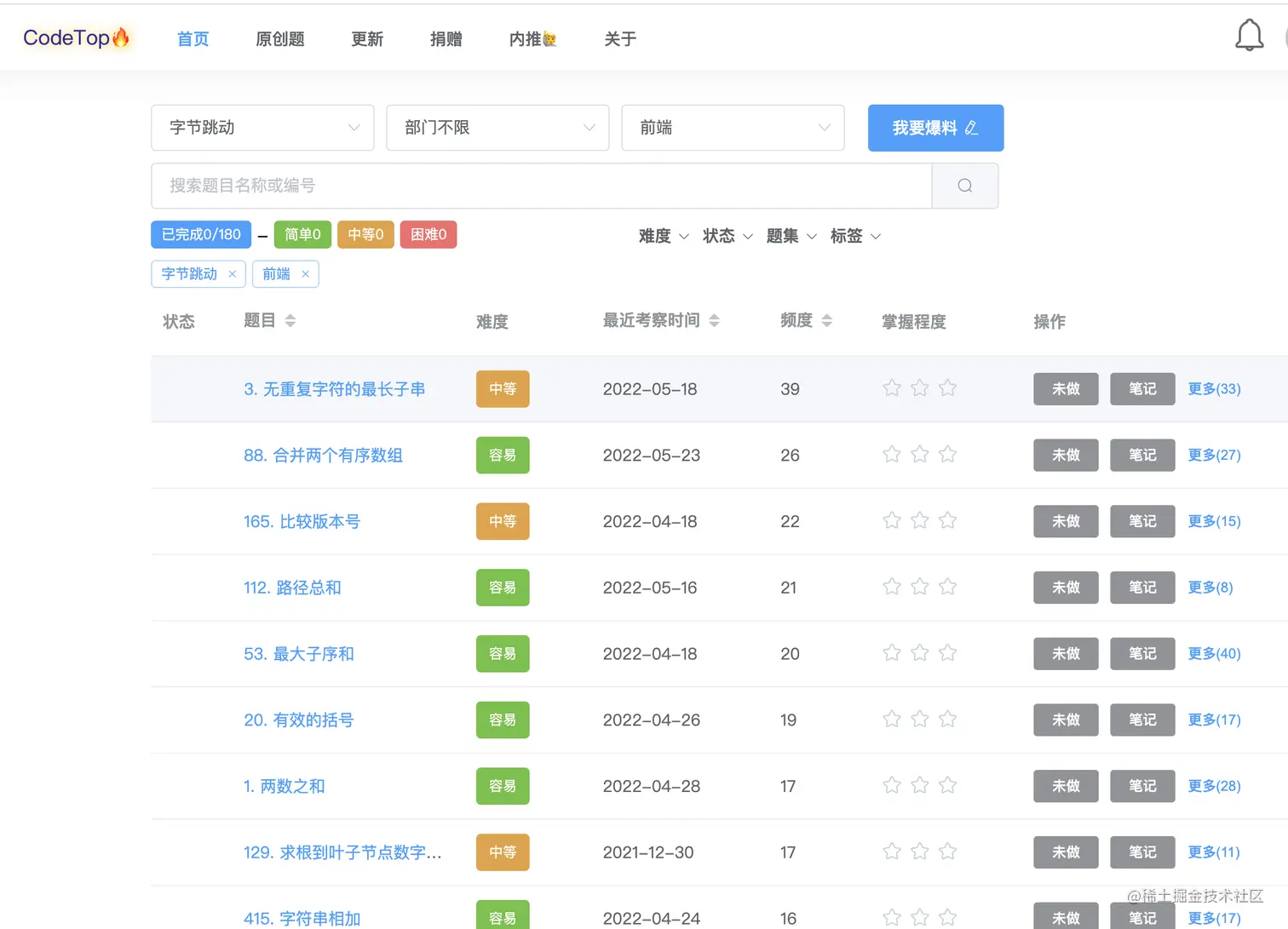 牛客的算法题也有高频的栏目,适合短时速成,另外它支持根据企业筛选,比如你要面阿里,可以选择只刷阿里面过的题,提升刷题效率。
