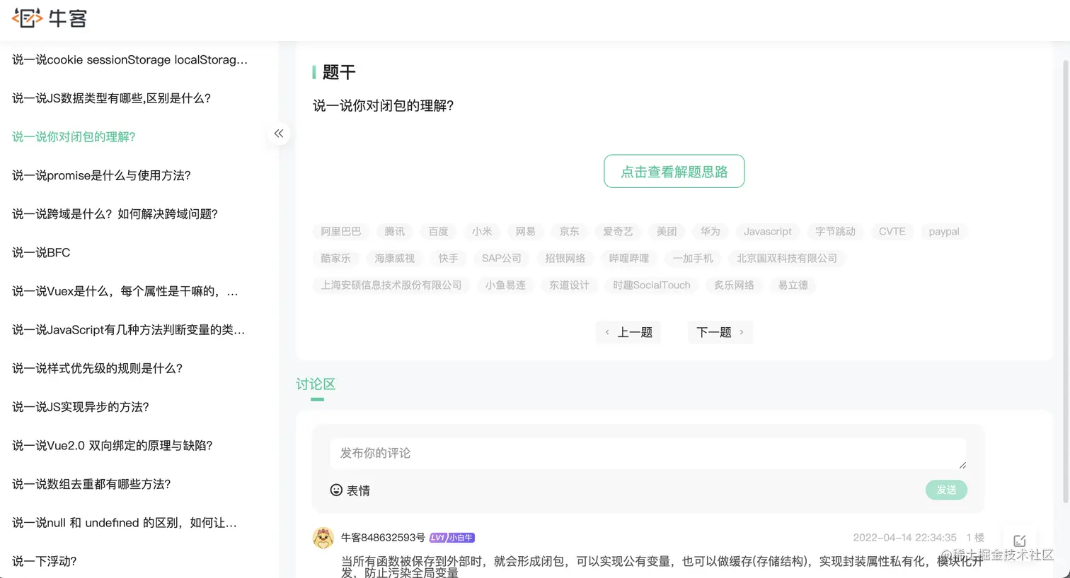 一站式的面试网站,包括前端、后端等,和牛客有些像,每个题目下面有评论,可以和大家讨论。