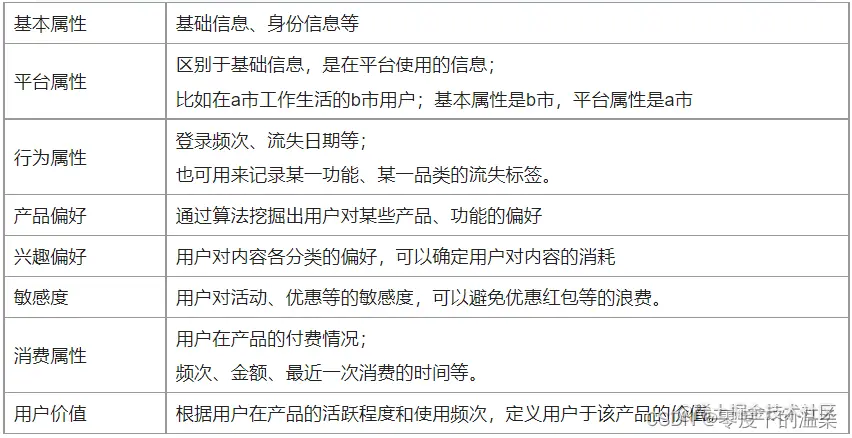 用户画像是数据仓库、数据产品的一个重要且热门的分支,它与提升用户体验、扩大市场规模等用途息息相关。既可以实现个性化推荐、广告、push等场景,也可提升流量的消耗效率。那么,面对诸多的用户身份信息,用户行为数据,我们该如何规划用户画像标签呢,用以赋能到运营业务上,使数据信息发挥更大的价值。