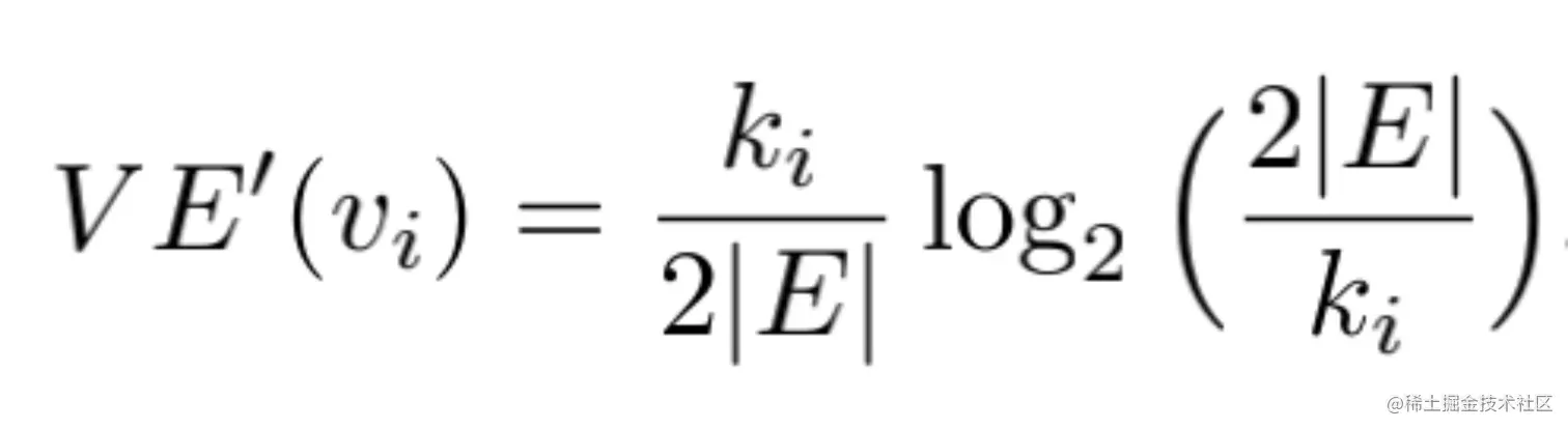 对于图G(V,E),V表示顶点,E表示边; 节点度:与节点相连的边的数目,ki表示顶点vi的度; E :图中存在的连接边总数。节点熵衡量的是——local ‘information’ that a given vertex carries about the global structure of the graph——关于整个网络节点携带的局部结构信息含量,节点熵越高,表明节点信息含量越大,说明节点重要性越高。当节点熵计算所基于的概率(p,衡量节点在网络结构中携带信息的概率)定义不同时,计算熵的方法也不同。