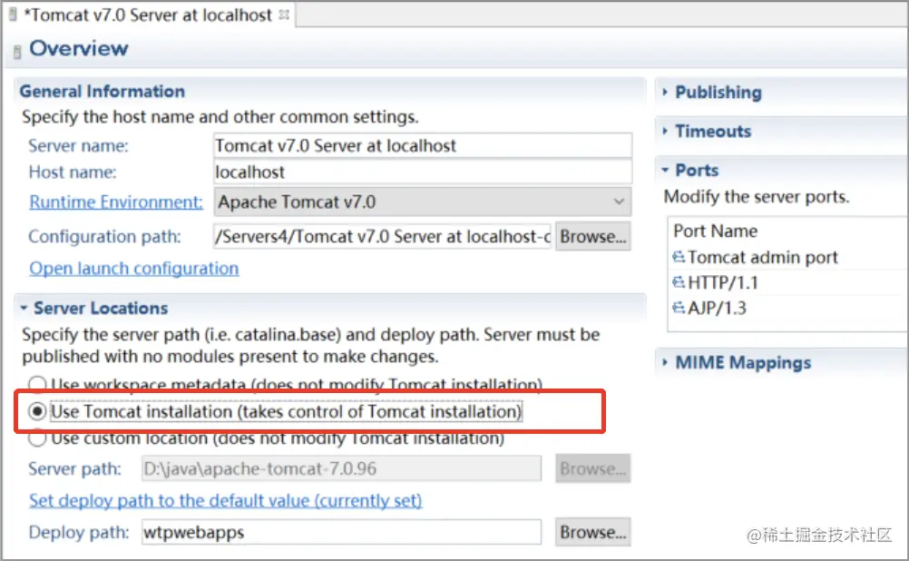 5.双击Servers视图窗口中新增的Tomcat v7.0