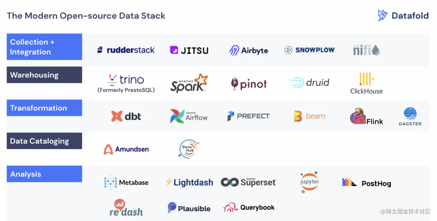 关于现代数据技术栈的浅见 www.modb.pro/db/377596 面向初创公司的现代数据堆栈 jiagoushi.pro/modern-data… 现代数据栈谁可以替换Spark mp.weixin.qq.com/s/YPDyKohKd… Tristan Handy,2020年12月,The Modern Data Stack:Past Present, and Future 2025年的现代数据栈 m.meremoggies.com/blog/modern… 2021 年要寻找的 6 种现代数据堆栈趋势 segmentfault.com/a/119000003… 聊一下数据民主化 www.modb.pro/db/377592 Jordan Volz,现代数据栈的未来 continual.ai/post/the-fu… Fivetran:云计算时代的数据管道 view.inews.qq.com/a/20220119A…
