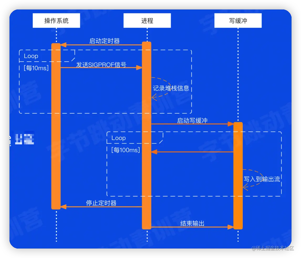 一共3个对象: - 操作系统:每10ms向进程发送一次SIGPROF信号;