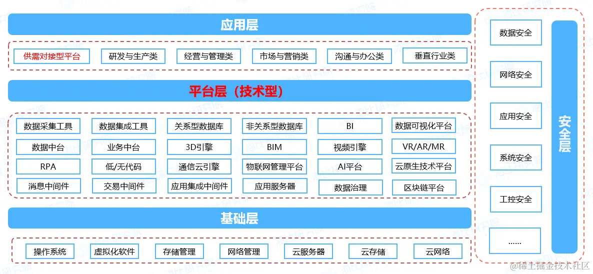 海比研究院认为,数字化底座和技术型平台本质相同,数字化底座是从企业用户需求角度进行抽象的结果,技术型平台是从厂商供给角度进行抽象的结果。