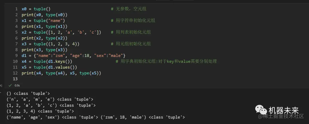 x0 = tuple() # 无参数,空元组