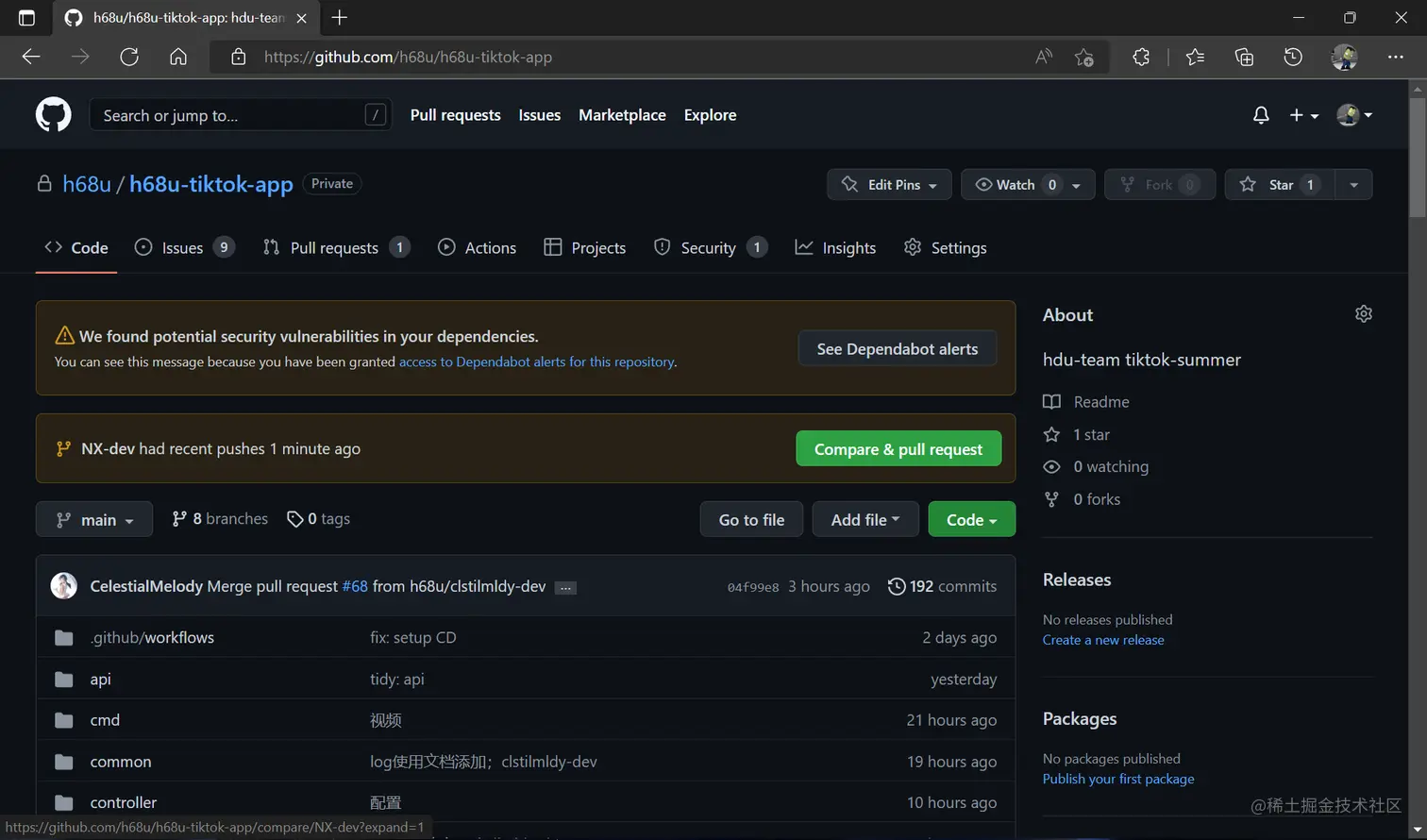 在浏览器中打开项目地址,可以看见提 PR 的提示