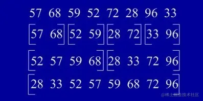 基本排序:归并(Merge)排序法是将两个(或两个以上)有序表合并成一个新的有序表,即把待排序序列分为若干个子序列,每个子序列是有序的。然后再把有序子序列合并为整体有序序列。