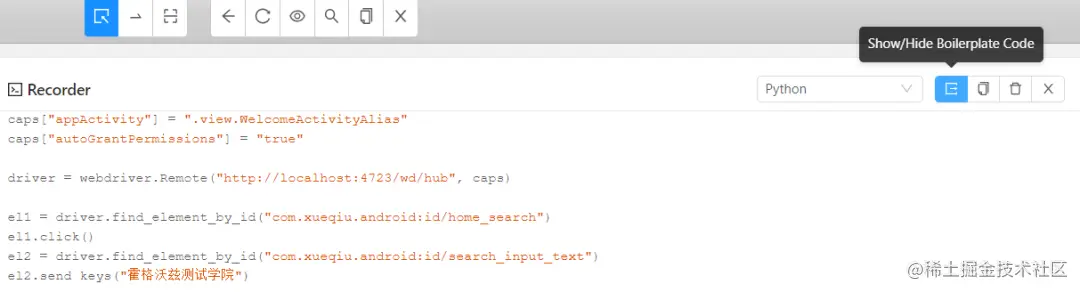 对于 Appium 的初学者,可以通过录制功能,了解编写用例的时候需要使用哪些 API,有哪些编写规范等,可以作为一个很好的参考。