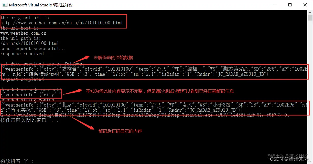 ok,我们把访问链接改为最原始的那个:www.weather.com.cn/data/sk/101…,然后加入如下的代码: