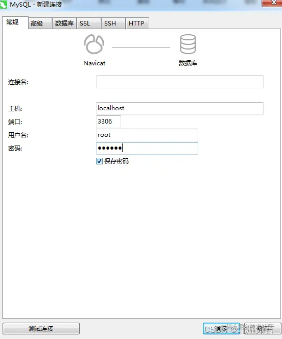 2.只需要填写主机名、端口号、用户名以及密码就可以了,点击连接,便可以连接到数据库信息(前提是你的电脑上必须已经安装了MySQL数据库)