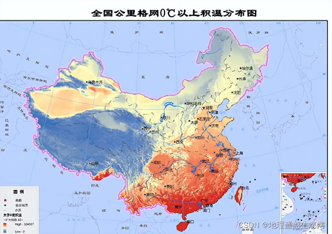 积温是某一时段内逐日平均气温之和,它是研究植物生长、发育对热量的要求和评价热量资源的一种指标,是影响植物生长的重要因素之一,对指导农业生产和生态建设具有非常重要的意义。作为重要的气候资源,积温与其它资源的区别在于存在很大的地域差异和时间变化。了解积温的空间变化及其分布具有很强的现实意义。