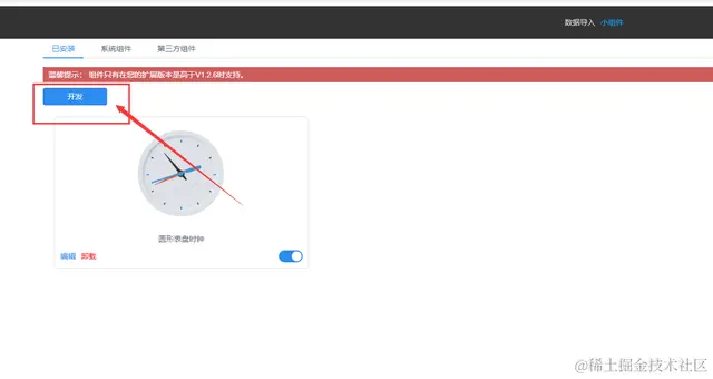 我们在已安装的列表中可以看到一个“开发”的按钮,点击后就有个组件开发编辑窗口,会一下web开发的同学都很容易搞定的,一看就明白了。