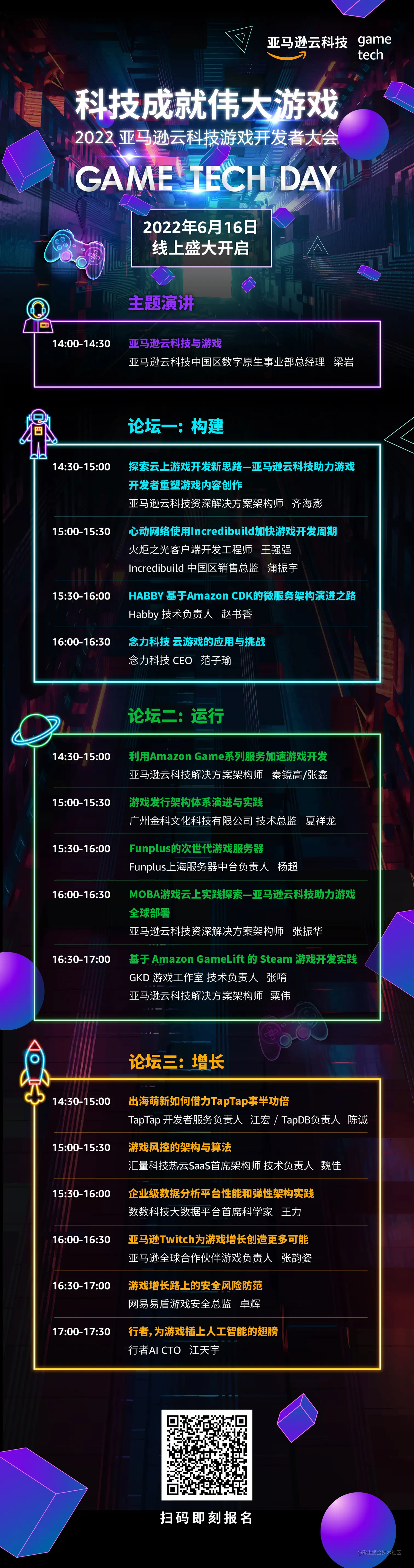 科技成就伟大游戏 | 2022 亚马逊云科技游戏开发者大会 亚马逊云开发者 2022-06-01 262 阅读1分钟 科技成就伟大游戏 2022 亚马逊云科技游戏开发者大会 GAME TECH DAY 2022年6月16日线上盛大开启