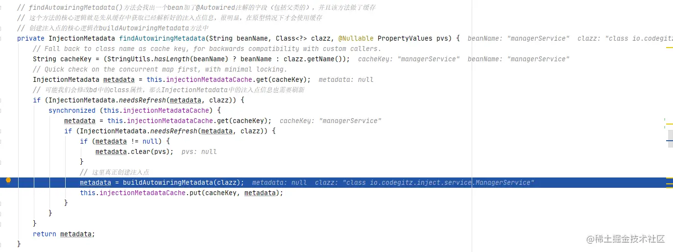 // 就是因为这个方法将@Autowired注解标注的方法以及字段封装成InjectionMetadata