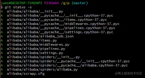 (4)git add alibaba/和git status -s