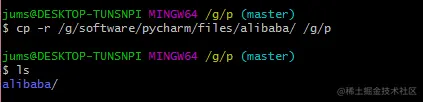 (3)cp /g/software/pycharm/files/alibaba /g/p