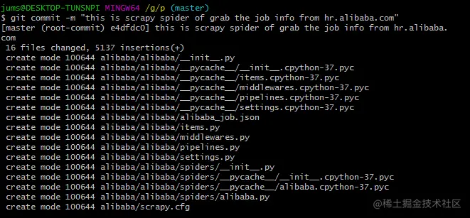 运行完第四步之后,我们还要将缓存中的文件添加到本地的仓库中才行,使用的是命令就是第五步所示,双引号中的*代表自己填写的注释,如图所示: