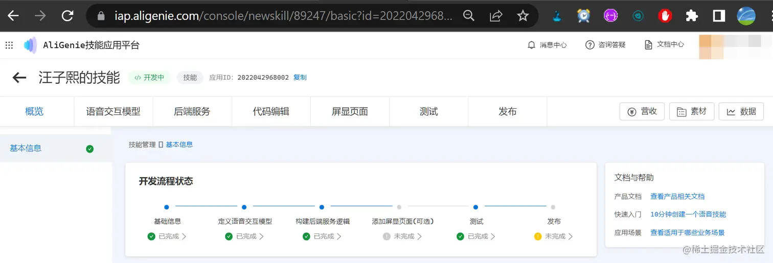 下面是天猫精灵技能创建页面。这个页面的 url: