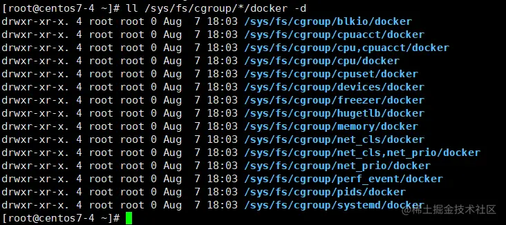 $ ls -l /sys/fs/cgroup/*/docker -d