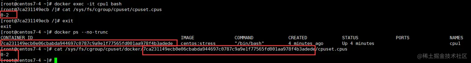 $ cat /sys/fs/cgroup/cpuset/docker/7ca231149ecb0e06cbabda944697c0787c9a9e1f77565fd001aa978f4b3adede/cpuset.cpus