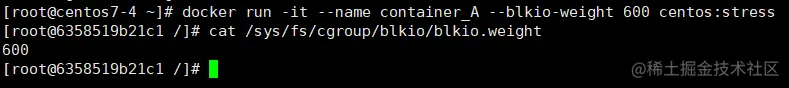 $ docker run -it --name container_A --blkio-weight 600 centos:stress