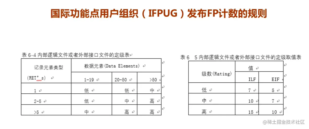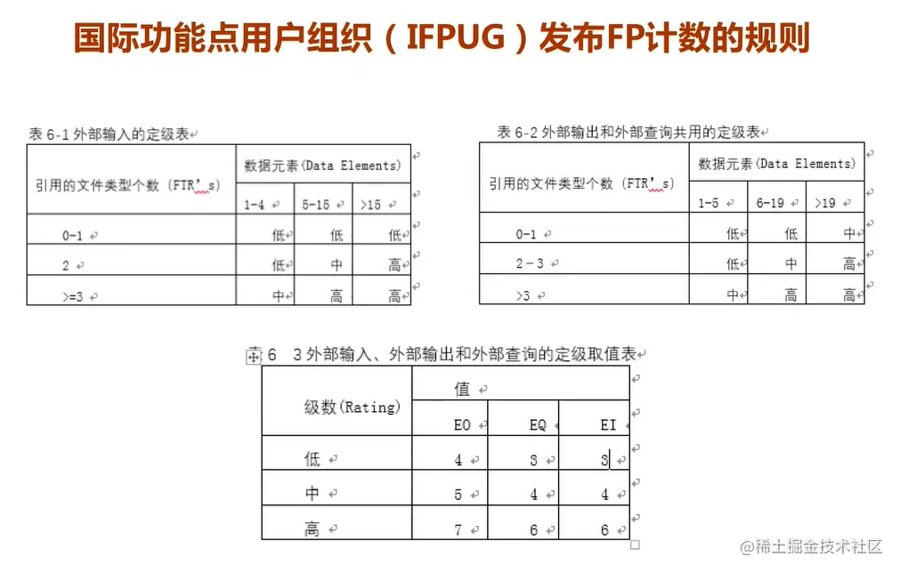 那么国际功能点用户组织(IFPUG)发布FP计数的规则: