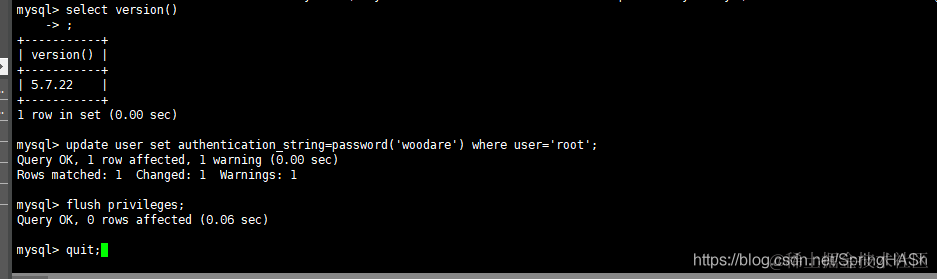 linux 下忘记 mysql 密码,并重置密码 已注销 2022-06-02 120 阅读1分钟 vim /etc/my.conf 增加 跳过检验进入 skip-grant-tables 保存退出 重启mysql service mysqld restart 输入 mysql -uroot 直接进入 更改密码 update user set authentication_string=password('woodare') where user='root'; 刷新 flush privileges;