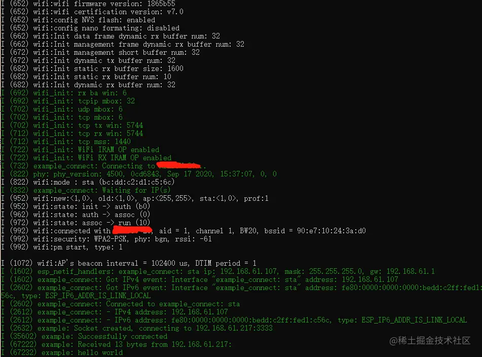 使用 esp-idf\examples\protocols\sockets\tcp_client 中的例程