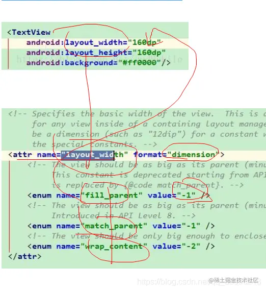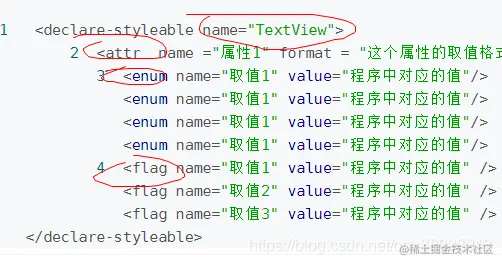 Attr :单词的意思是属性的意思(但是这里的属性和xml控件中的属性不是一个意思,不要混淆!Attr说是属性只是说的是它的单词的意思是属性),我们是通过Attr文件来定义我们控件中所使用的属性的,这样说可能大家会有一迷惑,那么来举个栗子: