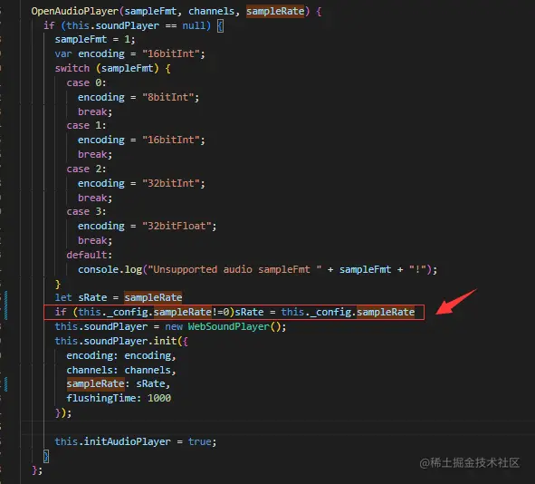 1)在播放器入口参数加入sampleRate参数,默认为0,则走正常的解析流程。如果不为0,则使用用户传入的采样率;