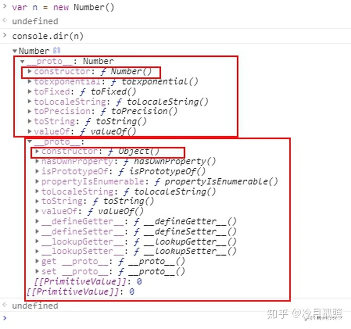 这里的 n 就是 Number 的实例对象,可以看到 n 里面有一个 proto 指向 Number 所指向的原型对象(也是 n 自己本身的原型对象),Number 为 n 的构造函数,它通过 prototype 指向自己的原型对象,而后又可以通过 constructor 指向回 Number 本身;
