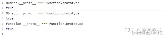 而 Number 函数也有一个 proto 指向 Object 这个构造函数的原型对象, Object 通过 prototype 指向自己原型对象 ;