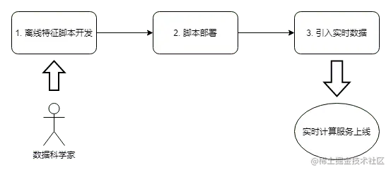 Figure-3: 在缺少合适的工具情况下的实时特征计算从开发到上线全流程