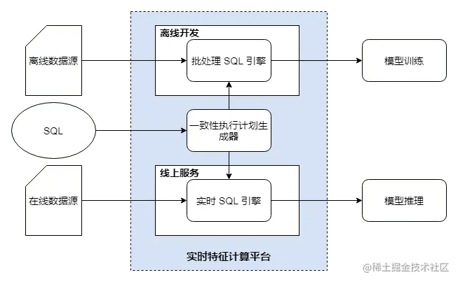 | 批处理 SQL 引擎 | 面向批处理特征计算优化,使得批处理 SQL 引擎可以处理大规模的数据,并且具有良好的可扩展性;同时基于批处理引擎开发的 SQL 可以被直接部署到实时计算 SQL 引擎用于上线,且保证线上线下计算一致性。 | 挑战三:线上线下计算一致性保证 |