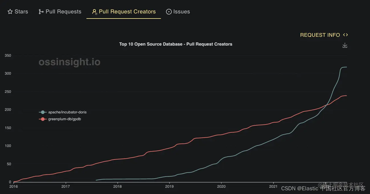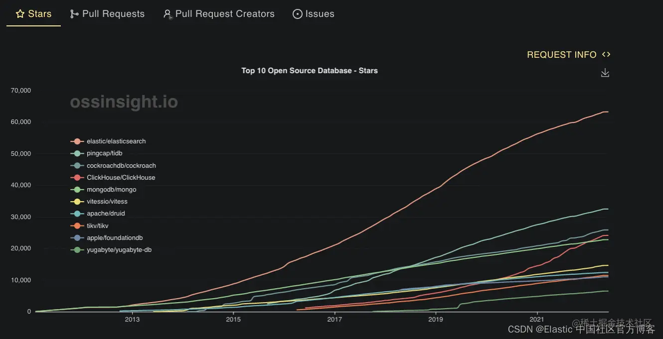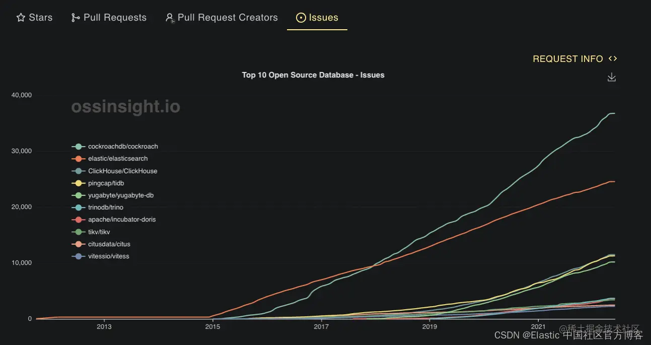 根据 OSS insight的报告,我们可以查看到如下的统计信息。