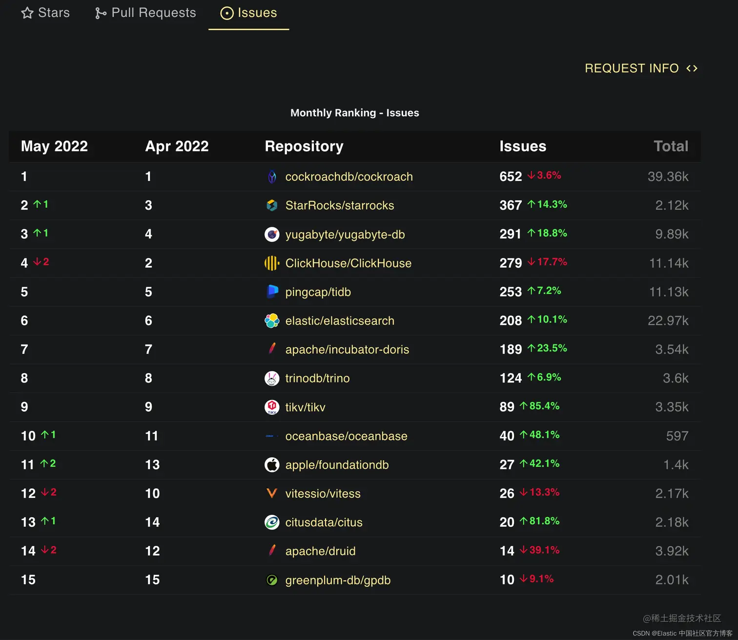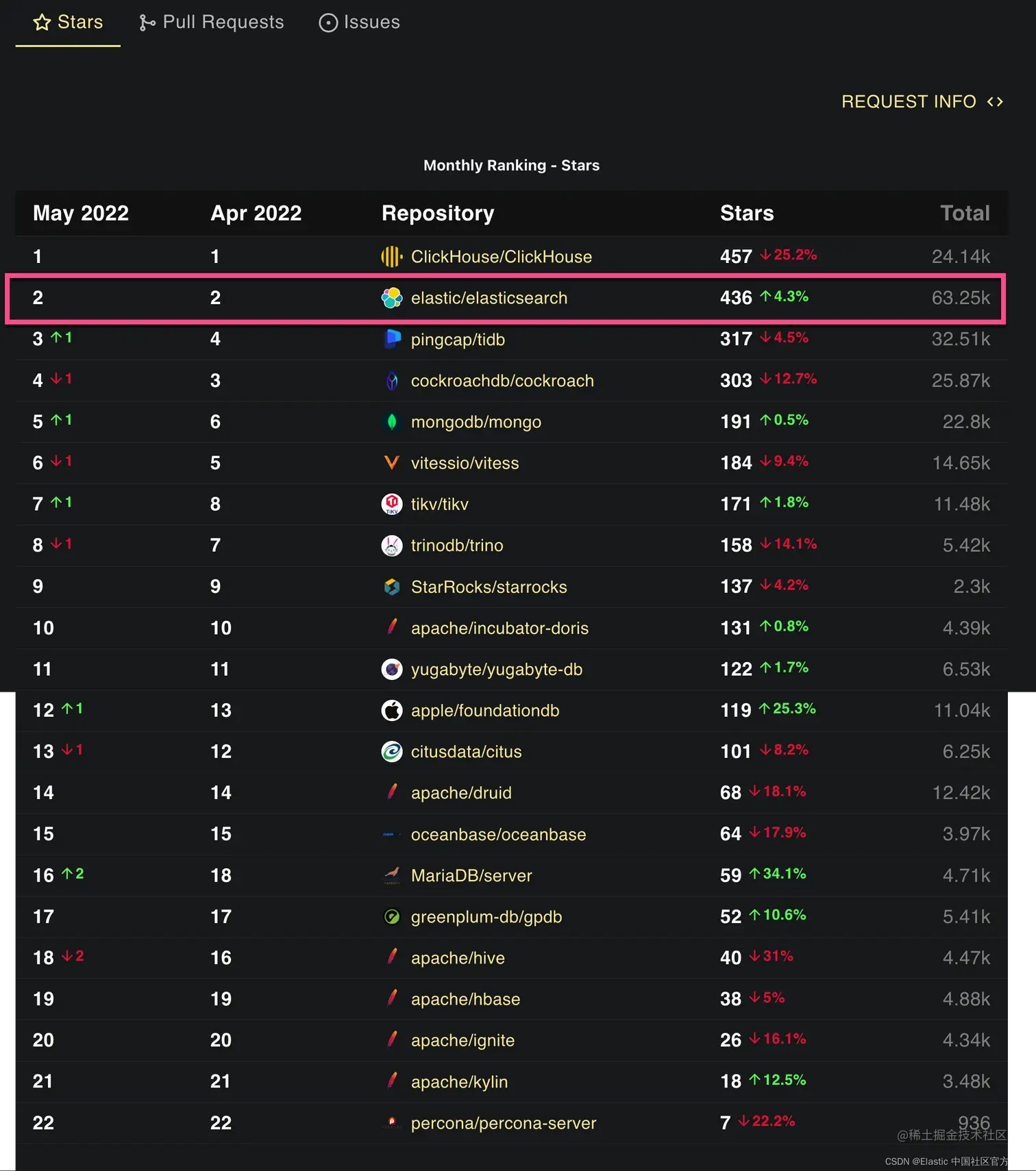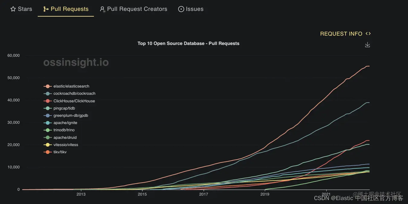 Elasticsearch PR 排名第一。