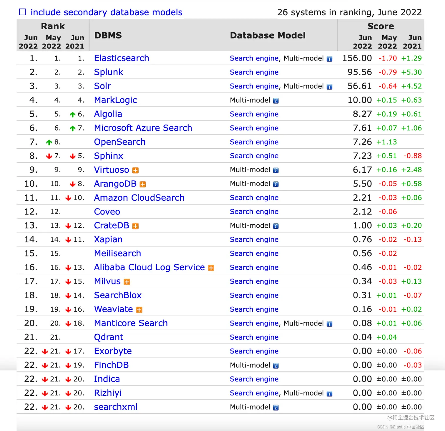 如上所示,Elasticsearch 目前排名第8。