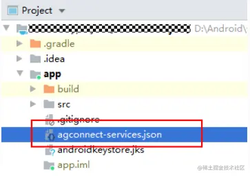 3.查看agconnect-services.json文件是否在工程的app目录下,agconnect-services.json文件必须在app目录下,如下图所示: