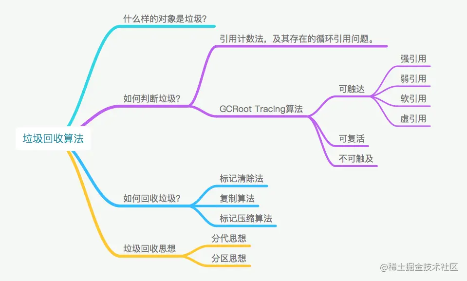 到这里,我们了解了什么是垃圾以及 JVM 是如何判断垃圾对象的。那么识别出垃圾对象之后,JVM 是如何进行垃圾回收的呢?这就是我们下面要讲的内容:如何进行垃圾回收?