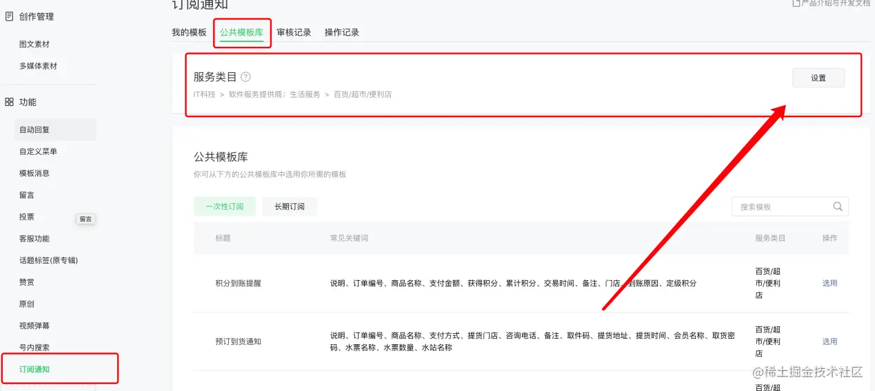 第一步:公众号添加订阅消息