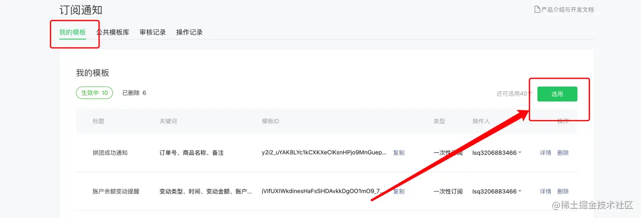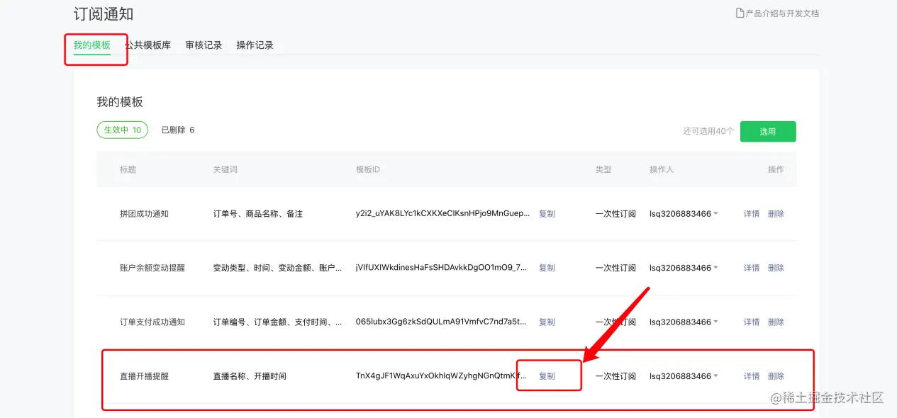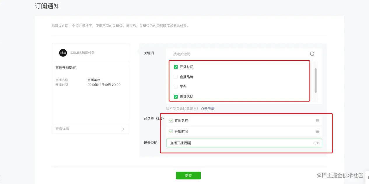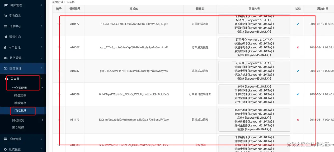 第二步:对照我们知识付费后台的订阅消息添加订阅消息