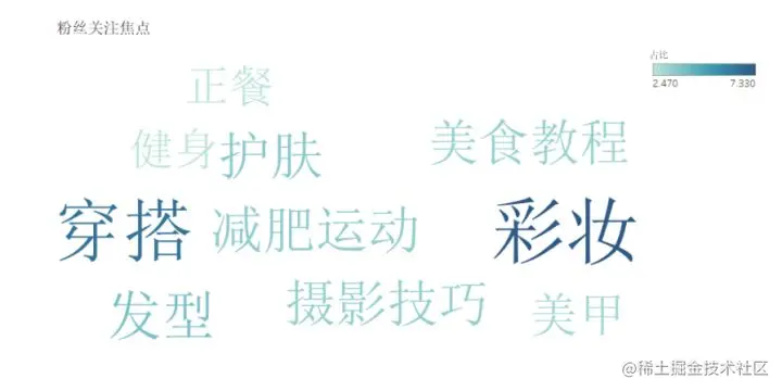 关于粉丝人群标签与粉丝关注焦点我们可以观察到的是,粉丝的类型并不局限于穿搭类,在美食美护上也有兴趣点。